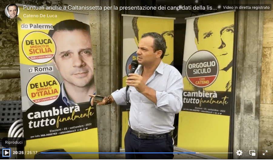 La lista Libertà/ScN di Cateno De Luca concorrente alle elezioni europee dello scorso giugno era composta da pescatori, allevatori, macellatori, cacciatori il cui programma politico volgeva a tutelare le predette categorie confliggendo integralmente con le linee politiche europee volte alla riduzione degli allevamenti intensivi e dell’utilizzo di pesticidi nell’agricoltura nonché ad aumentare i periodi di sosta forzata per i pescherecci.
