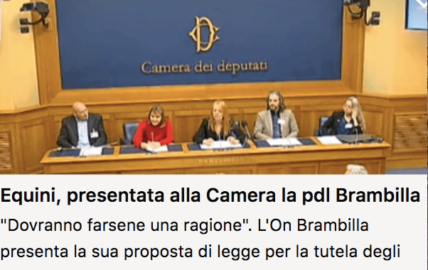 E’ stata presentata in conferenza stampa alla Camera, la proposta di legge dell’On Michela Vittoria Brambilla “Norme per la tutela degli equini e loro riconoscimento come animali di affezione”.